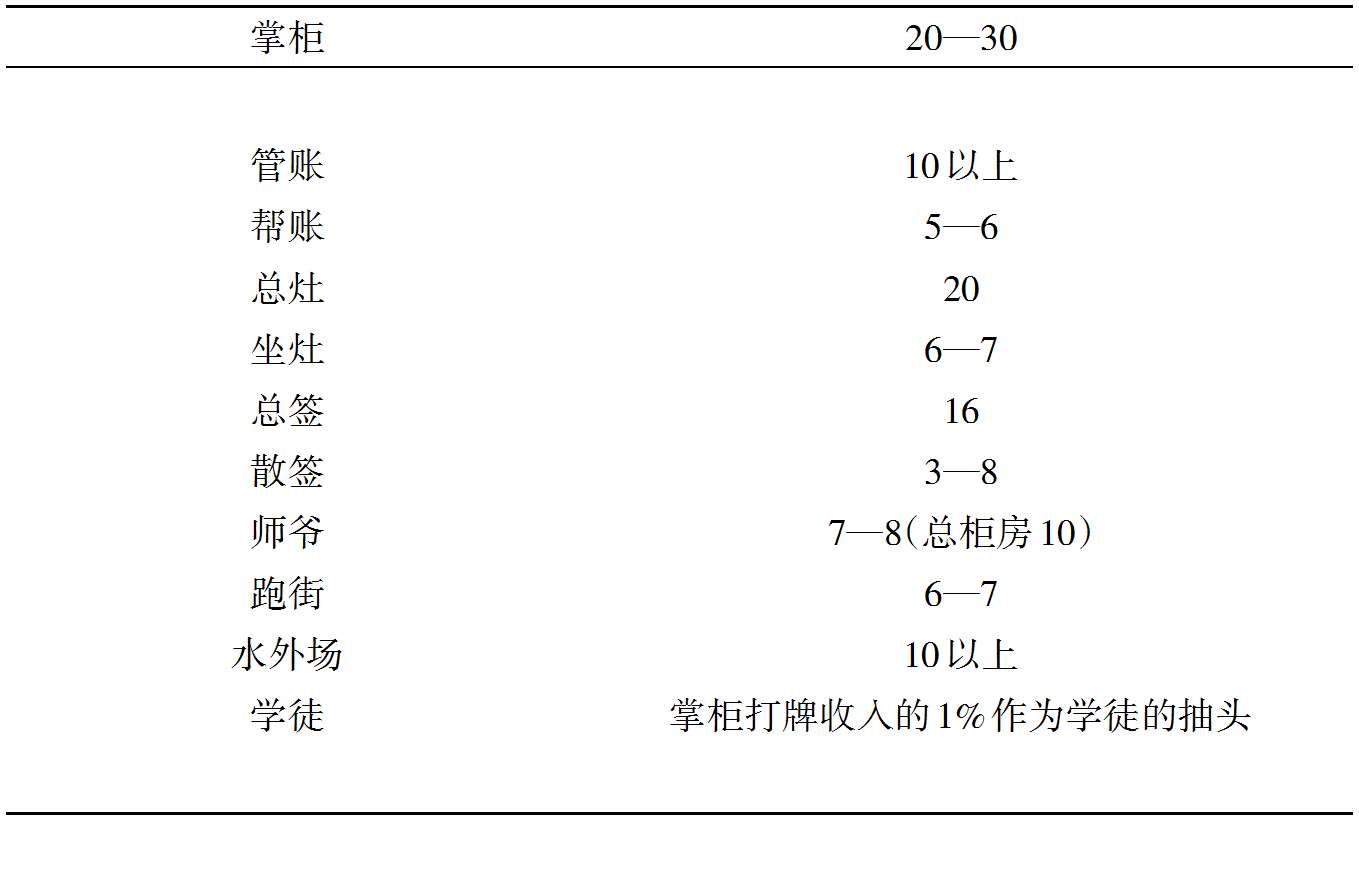 表4.2 1880年前后李四友堂管理人员的薪水(铜钱:串/月)