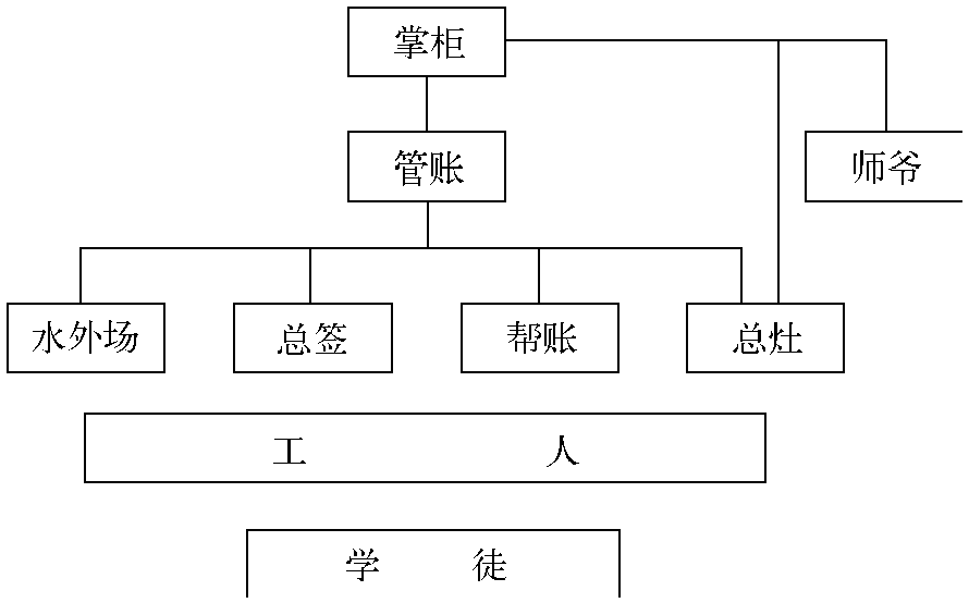 每个家族堂的主要监管机构之下,是每个灶、井、批发商号和笕的分立的管理机构。有关李四友堂的资料给出了这些管理层级是如何运作的最完整描述。 (53) 以盐灶的组织为例,我们可以看到有两个领导层(见图表4.1)。各盐灶都处于一个柜房的全面监管之下,它的掌柜直接听命于家族的总办。