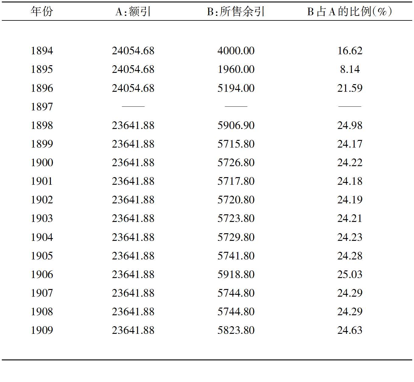 表6.3 云贵边岸所售余引与各年额引的比例(陆引已折合为水引)
