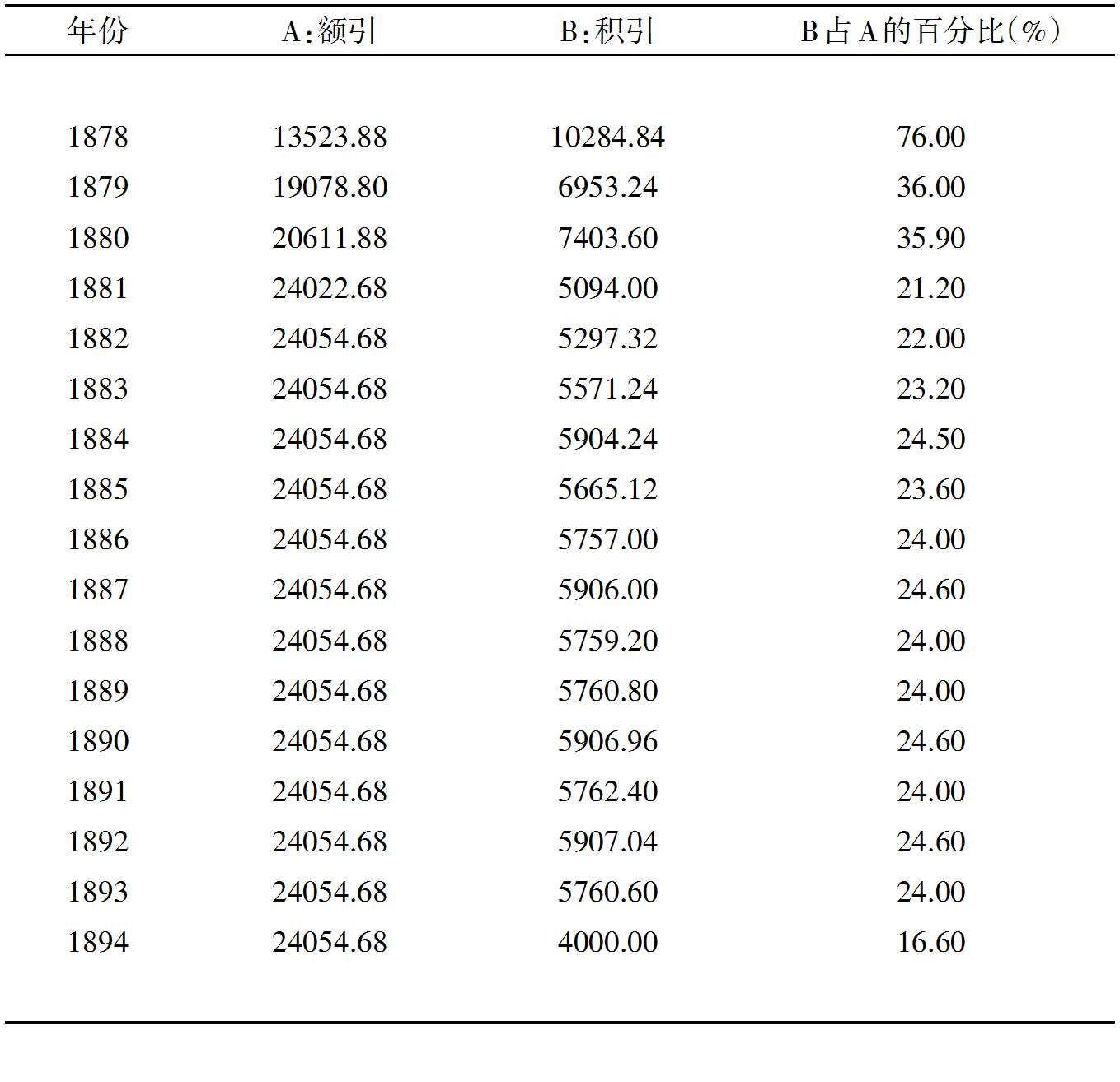 表6.1 云贵边岸积引与各年额引的比例(陆引已折合为水引)
