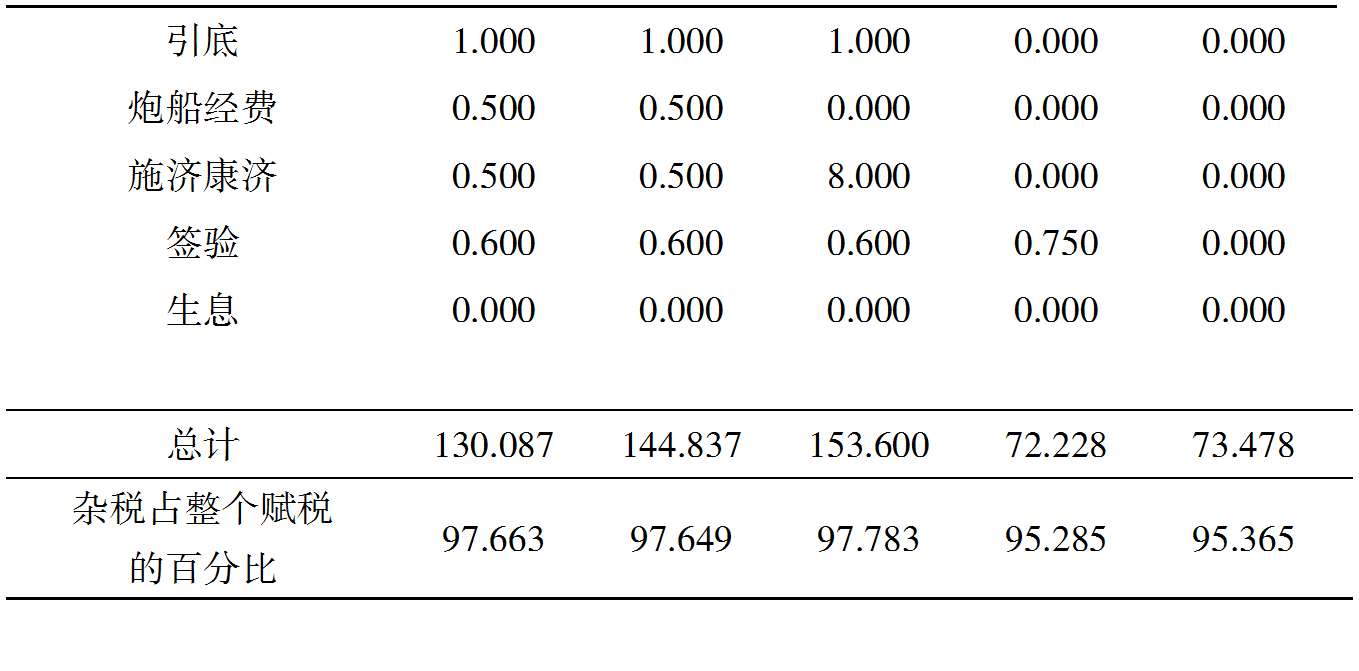 并非所有的费用都向在各个市场出售的食盐征收,并且每种税和费的收费标准也各不相同。但在晚清,费和附加税远远超过正常的法定盐税。正常的税收相对保持不变,而新的税种日益增多。甚至在1860和1870年代,作为盐商苦难之源的厘金,也保持了相对稳定,但为了特别目的而征收的新的、日益增加的费用加在了向商人出售的盐价上。最重要的是“加价”迅速增多,这一主要类别的特别税收是为了支付外国赔款、添练新军和晚清地方政府改革。 (35) 到清朝末年,富荣食盐的杂税占到了向四川这一最高产盐场生产食盐所有征收税赋的95%—98%(见表6.2)。根据樵甫的记载,1916年购买、运输一引花盐需约140两。杂税对各食盐销售地的影响大小不一,计岸和边岸的盐价因此增长了一倍多,而湖广市场的盐价增长了50%强。 (36)