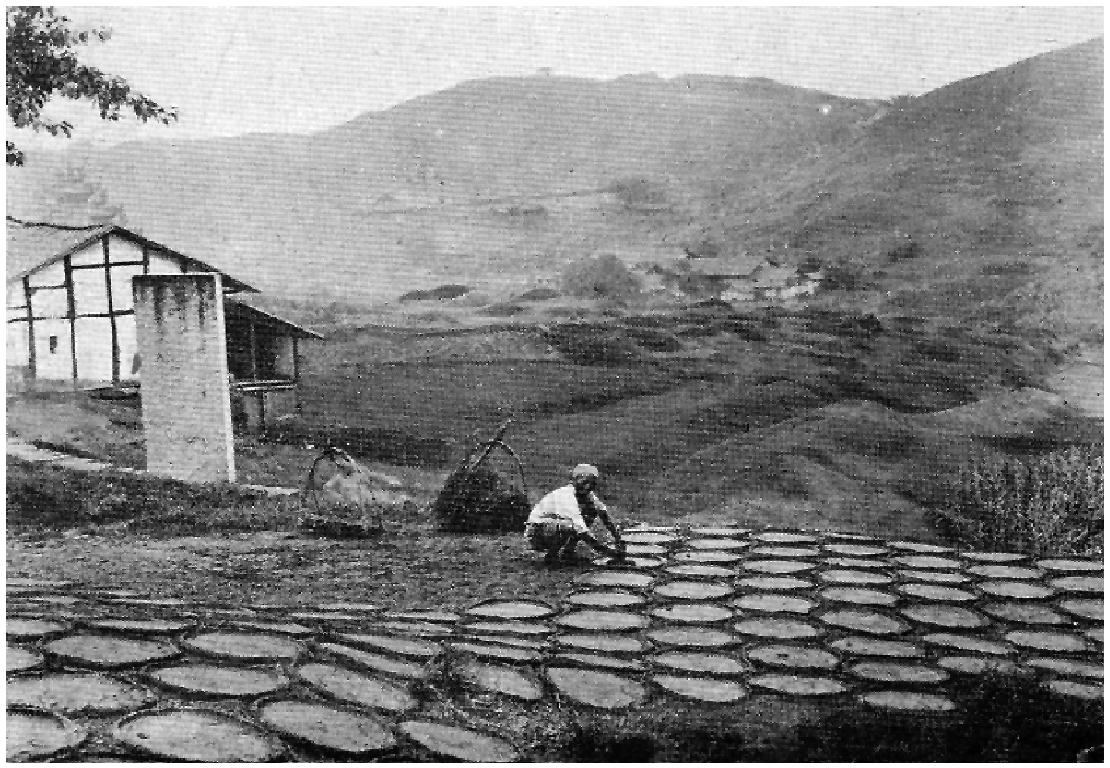 图片10.2 自流井双牌坊地方晒牛屎饼(约1919年)