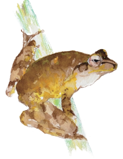 原先一直被叫作“斑腿泛树蛙”,山区常见。体长通常在5厘米左右,雌蛙略大一点,会超过6厘米。这种蛙的脚趾端具有发达的吸盘,能牢牢吸附在物体表面,叫声独特。