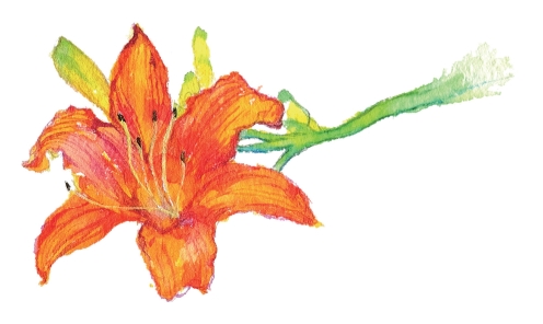 花叶俱美,碧绿的条状叶纵横交错,粗壮的花葶从绿叶丛中挑出,顶生数个花苞,花儿依次开放。花很大,近漏斗状,花色从橘黄到橘红皆有,极为艳丽。