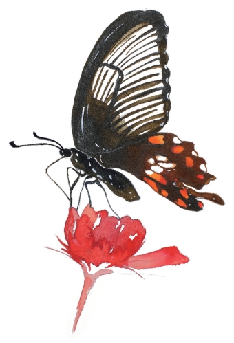 玉带凤蝶雌蝶拟态有毒的红珠凤蝶