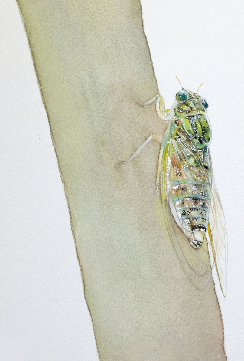 蒙古寒蝉体长3厘米左右,背部以绿色为主,杂以黑斑。其鸣叫声比黑蚱蝉好听很多,近似“伏天儿、伏天儿……”。鸣唱期很长,在浙江,可以从6月持续到10月初。