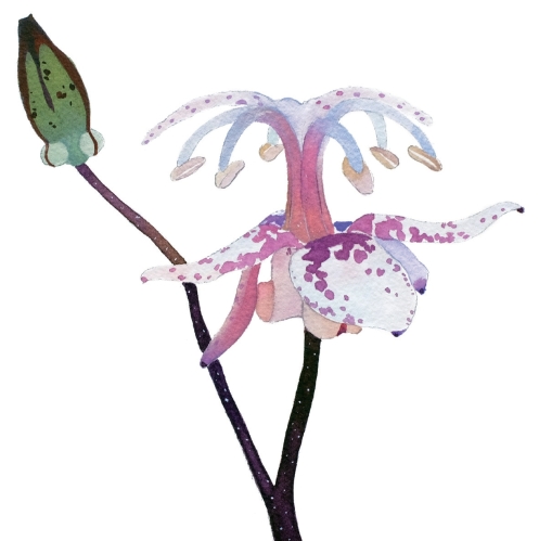 初秋,是油点草的盛花期,山区常见。油点草的绿叶上常生不少灰黑如油迹的斑点,这在春天的幼叶上最明显。油点草的花更为奇特,花分上下两轮:下面一轮,是反折的花被片,呈白色或淡红色,上有紫红斑点;上面一轮,有6枚雄蕊,它们有很多花粉的顶端向下低垂。