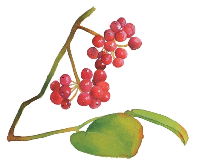 菝葜,是一种属于百合科的木质落叶藤本,江南的山里随处可见,秋季果熟。菝葜的叶子很好认:互生的叶片接近圆形,叶柄下部长有叶鞘,还有卷须。其红色果实可鲜食,微甜而脆,口感一般。