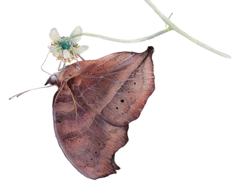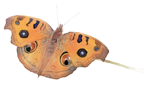 后翅的一对眼斑特别大,如一双炯炯有神的眼睛,因此被称为“美眼蛱蝶”实不为过。翅的反面在不同季节有不同的色彩与纹路,春夏时节为较浅的黄褐色,也有眼斑;在秋季,翅反面无眼斑,酷似一枚枯叶。