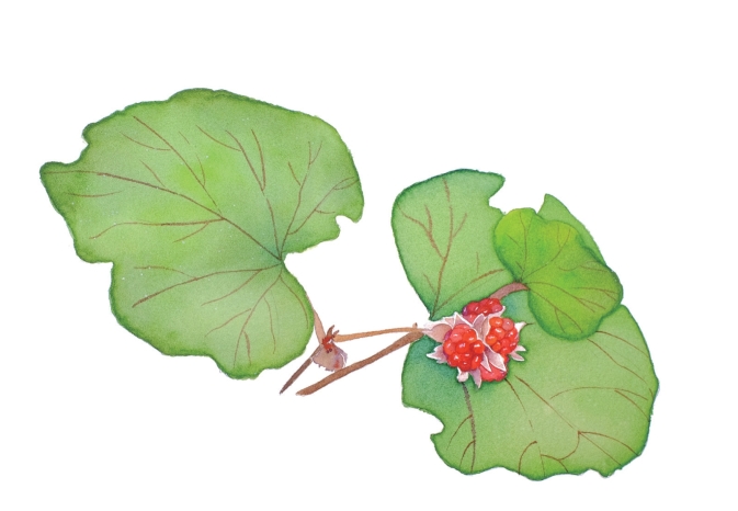 寒莓属于常绿藤本,但不往树上攀缘,而是贴地而生,大片大片地生长在山边灌木丛中、竹林下。寒莓的叶子很独特,接近圆形,像缩小了的莲叶,这跟其他常见的悬钩子属的植物不一样。年底,就可以见到寒莓的鲜红而饱满的果实。