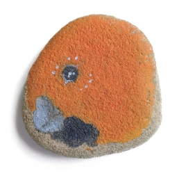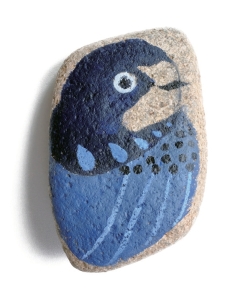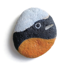 步骤2:根据石头天然的形状,用铅笔在上面画上小动物的草稿(图中示例为北红尾鸲、家燕和短尾鸦雀)。不用画得特别精细,可以适当卡通化。