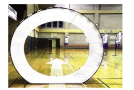 此部分向右旋转或向左旋转。无人机在空旷的地方飞行时,拐角处有一个标志(也称为“空气标志”,安装在4.5~6m的高度),转角部分为90°,有一个180°的旋转部分可以转动或返回旗帜,在直线部分,有很多机会可以提高赛车无人机的性能。但是在拐角部分,操作技能比无人机的性能更为重要。通过银色拐角部分的速度也决定了比赛的赢或输(图5-6)。