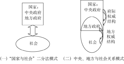 “国家—社会”与“中央—地方”两个视角的综合,不但意味着在方法上,中央与地方关系研究能够在两类视角间相互切换,因而破除了援用财政政治学方法的障碍;而且也意味着在研究对象上,不可单纯地局限于中央和地方政府,地方社会的变化也应当被考虑进来(在本书第三章、第五章都分析了地方社会的变化对中央与地方关系的影响)。同时,引入国家—社会的视角,也使中央与地方关系研究突破了传统组织学的范畴,从科层制或政府间关系视角下解放出来。