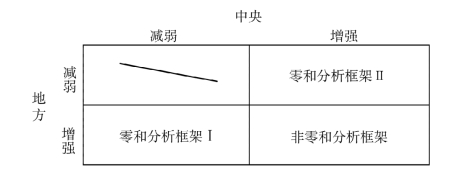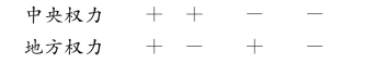 依据以上两种研究的认知模式,则改革时期中央与地方的权力关系所呈现的消长或相互助益的情况,可分为以下四种: