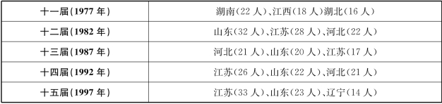 表4.8 1977—1997年历届中央委员会籍贯分布前三名的变化