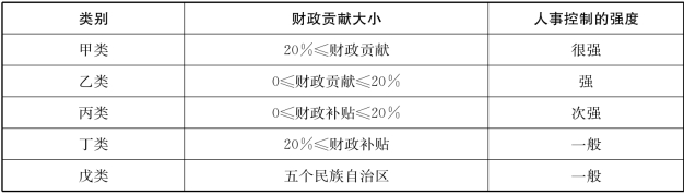 表5.2 依据各地区财政贡献、中央人事控制强度的分类