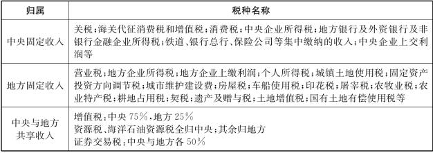 表7.4 分税制下中央与地方的收入划分