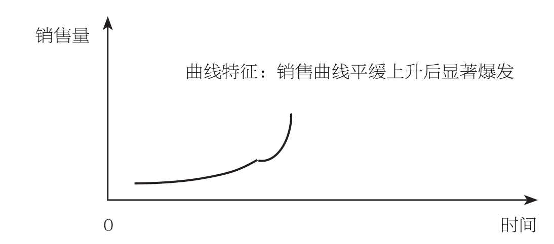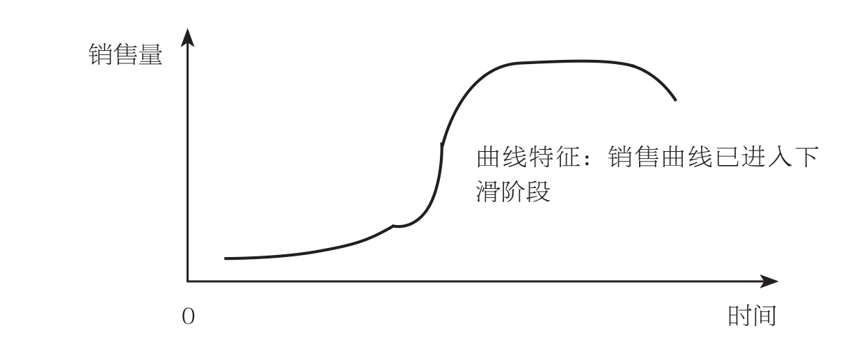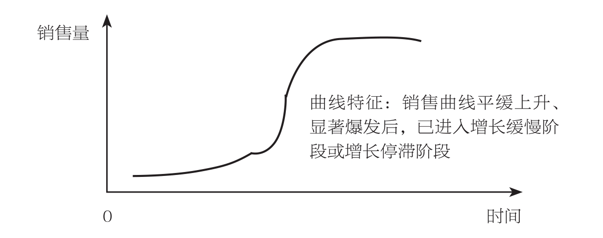 此时我们需要统计一下目标企业所在行业历年的市场销售数据,然后绘制成曲线图。绘制出来的曲线图(见下面四个图)在总体表现上一定是符合行业(产品)生命周期曲线特征的,只要查看其符合哪一种特征就知道其所处行业属于哪个阶段。
