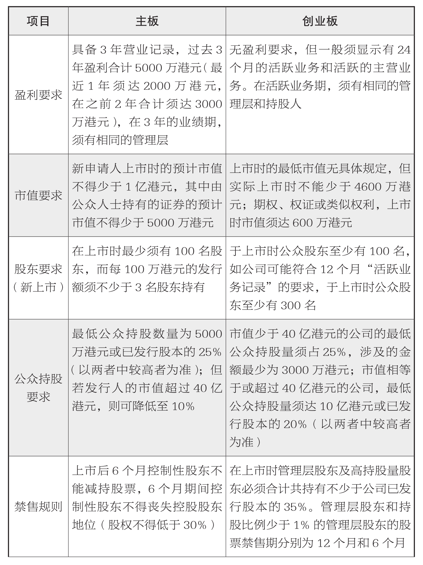 在香港的资本市场上市也以IPO和借壳上市两种方式为主。香港资本市场的股票换手率比美国市场要低很多,经常可以看到有一些股票一天也没有多少交易量,因此流动性相对差一些。在市盈率方面,香港资本市场的市盈率大概只有纽约证券交易所的一半,约是纳斯达克的60%,因此同样的股本募集的资金规模要小很多,这是一个缺点。