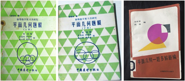我还与李梦樵老师合编20万字的《平面几何一题多解新编》,由安徽教育出版社出版。李梦樵先生是胡炳生、王忠汉的老师,水平高,在成书中给予关键指导。唐以荣、黄承宏教授对个别难题的解决提供了帮助。本书编辑胡炳生教授,为了节约成本,胡老师自己做的封面设计。