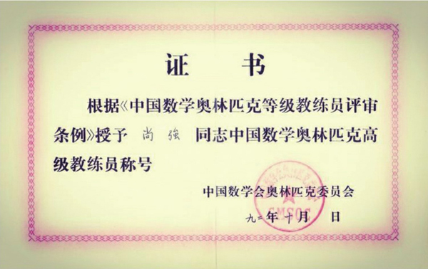 天赋、爱好、执着、刻苦没有让我登上数学王国的巅峰,数学家的梦想渐行渐远,但付出终会有回报。在上帝为你关上一道门时,一扇窗将会为你打开。1991年在市教委李学智主任的关怀下,我有幸到中科大进修一年,结识了很多全国知名专家:朱德祥、严镇军、冯克勤、李尚志、常庚哲等等,进一步学习了张量几何、内蕴几何、霍奇理论、纤维丛理论、芬斯勒几何、莫尔斯几何等等。另外还参与了中科大的数学奥林匹克集训队培训工作,这为我以后的发展打下了坚实的基础。同年,王传斌老师介绍我认识了数学家单墫教授,单老师看了我的书以后很认可,把我推荐给1992年国家奥林匹克队总教练苏淳教授,做几何教练,结果一鸣惊人,全部选手在国际大赛中几何得满分!回来后我们获得了中国科协、国家教委联合嘉奖。