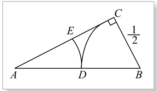 如果设AB=1, AD=x,便有x2=1·(1-x),从而有x2+x-1=0,解得(只取正值)。据此,可以设计作图方法如下:以AC=1, BC=