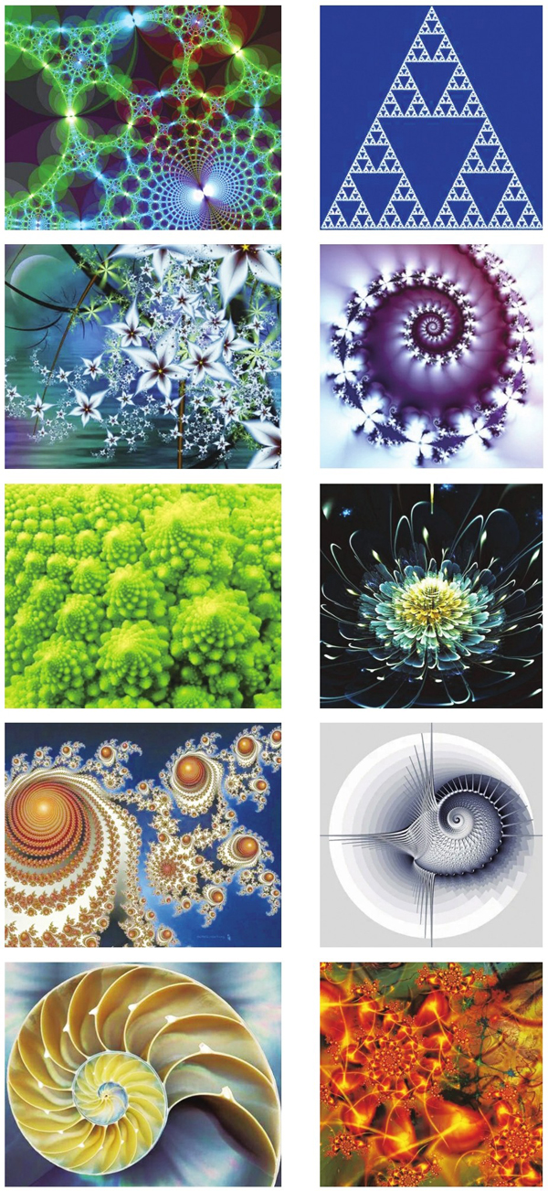 以下,是由数学大师曼德尔布罗制作的若干分形图画(如图3-2-5所示),它们是通过数学公式进行迭代,由电脑自动生成的奇妙绘画作品。其奇妙如同梦幻,是人工所不能达到的。