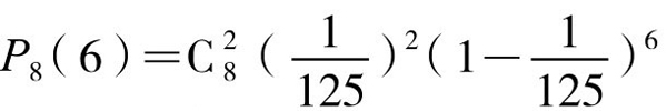 在这8次投掷中,概率最大的14点、13点、15点,都没有出现;反而概率极小的6点,出现了两次。这是不合常理的。因为在投掷8次中出现两次6点的概率P8(6),按二项分布来计算,为