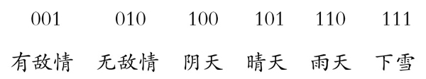 电报发明以后,可以改用电信号来传递信息。设想:用电线连接前线与京都,在京都安上一个电灯泡,前线装上一个电路开关。当有敌情时,便按下开关使电线接通,京都的电灯泡点亮;无敌情则不按开关,京都电灯泡不亮。这也是传递两种信息,但所用方法简单多了。如果还想传递更多的信息,那该怎么办呢?例如,除了前方有无敌情外,还想知道前线的天气情况——阴、晴、雨、雪,那么多安装几个电灯泡,多安装几个开关,就可以传递这些信息。方法如下:用数字1表示灯亮,数字0表示不亮,设置以下“暗语”。