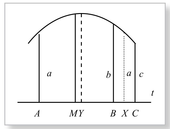 由假设(1),因为b>a>c,所以A点关于冬至点Y的对称点X,应在B点与C点之间。