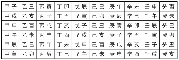 用这60个干支,给每一天起一个名字,依次称为:甲子日,乙丑日,丙寅日,丁卯日……直至癸亥日,这样,连续60天,每天都有不同的名字。然后从头再来,从甲子日起循环往复,周而复始(表4-3-1)。