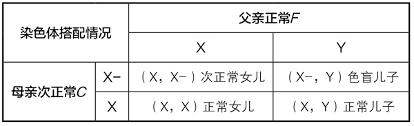 那么,为什么男性色盲比女性多呢?这是因为女性有两个X,如果其中有一个异常、一个正常,仍然可以维持正常。我们暂称此为“次正常”(非色盲)。