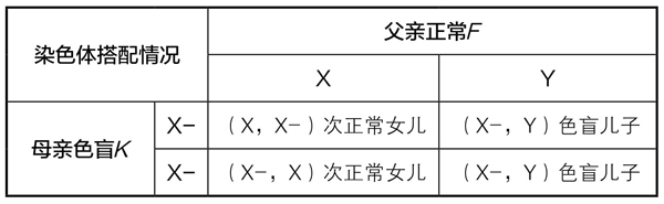 第三类夫妇(F, K)子女的染色体搭配也有4种情况(表4-5-2):