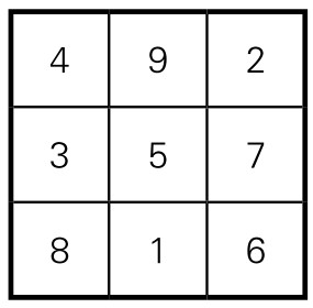 类似这样的数字方阵,中国古代称之为“纵横图”,西方则称之为“幻方”。