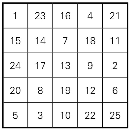 以五阶幻方为例,来加以说明。