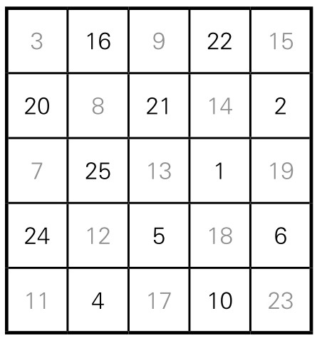 大家可以通过计算,验证它确实是一个符合条件的五阶幻方。