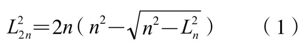 1.刘徽设圆的半径为1单位(尺),从计算圆的内接正多边形面积出发,通过求圆面积,间接地求得圆周率近似值——徽率π≈3.14。祖冲之则设圆的直径为1(丈),计算圆内接正多边形的周长,直接得到圆周长的近似值,从而求得圆周率近似值。为了使计算简化,他导出了圆内接正多边形周长的递推公式: