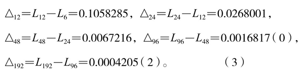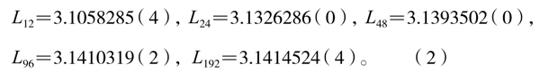 从L6=3开始,利用公式(1),依次算出L12、L24等。每次开方取8位小数,并对第8位小数“四舍五入”,得