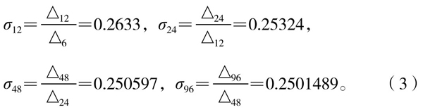 由此可见,序列(3)似乎逐渐趋向于一个定值(0.25),因此称此近似的等比数列为拟等比数列。