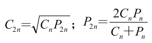 即圆内接正2n边形周长C2n是内接正n边形周长Cn与外切正2n边形周长P2n的几何平均值;而圆外切正2n边形周长P2n,是内接正n边形周长Cn与外切正n边形周长Pn的调和平均值。