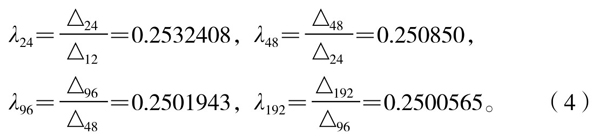 取λ=λ192为此拟等比数列(3)的“公比”,来估计L384, L768, …, L12288之值。