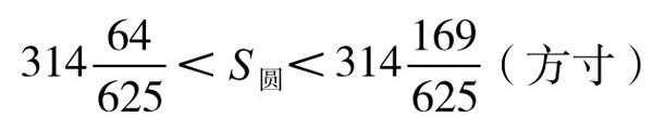 一般地,对于正整数n而言,我们有刘徽不等式S2n<S圆<S2n+(S2n-Sn)。将S96、S192的数值代入(5)式,得