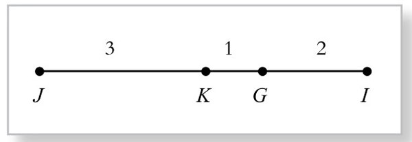 如上述所证,知J、K都在直线GI上,或者说四点J、K、G、I共线。而且由于△PQR与△ABC逆对称,△ABC又与△DEF逆对称,且相似比都是-2。故知这四点不仅在一条直线上,而且其位置有固定距离关系:JK∶KG∶GI=3∶1∶2。