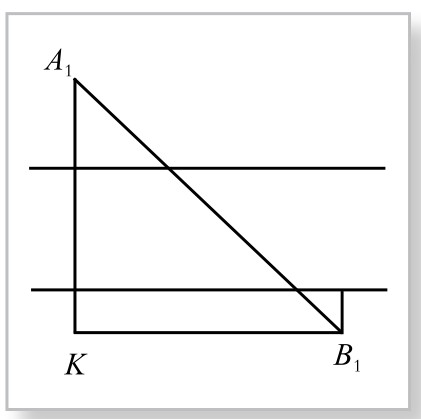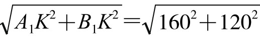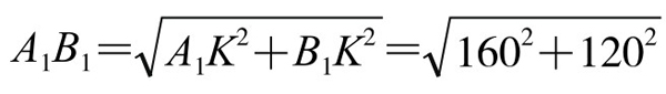 由此得到计算方法如下:过B1作河岸的平行线,交AA′的延长线于K,如图5-6-3,则易知A1KB1为直角三角形,两直角边A1K=(40-10)+10+100+8+(20-8)=160, KB1=120,斜边=200。