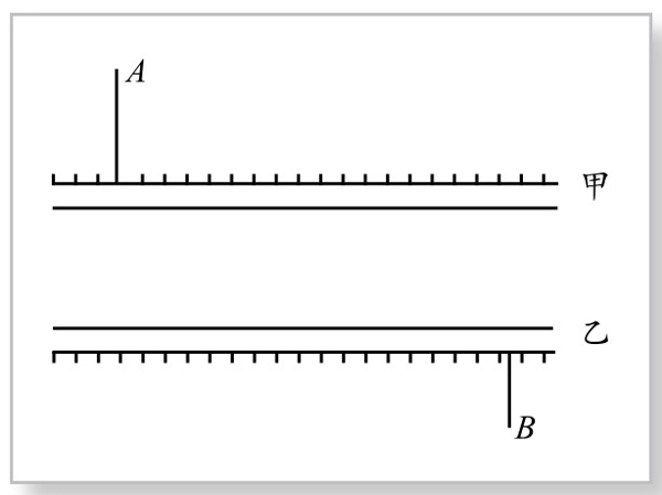 思考二:设想小河甲与乙,都缩成了一条线(宽度为0),那么,显然A→A1、B→B1。而这两点之间的最短距离就是直线A1B1,如图5-6-4所示,它的长度就是A1B1==200。加上两座桥的长度,于是我们问题的答案就是:从A到B的最短路程等于200+10+8=218(m)。