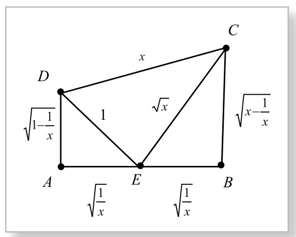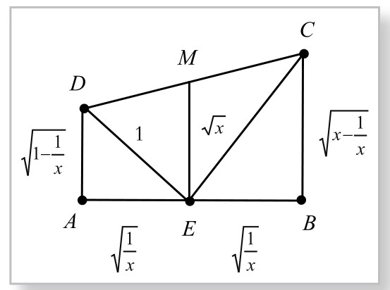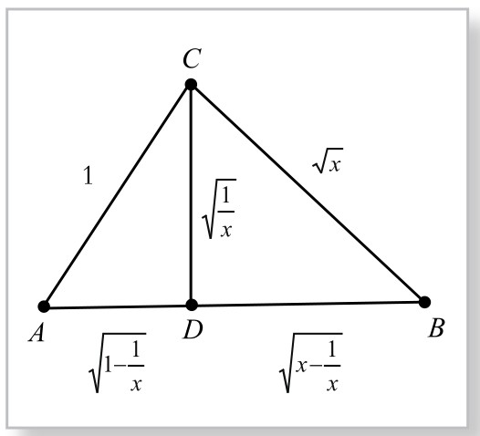 思考二:前面是作等腰梯形,来联系有关的无理式,使无理方程化为有理方程(二次方程)。我们能否将作图简化一点呢?——矩形?三角形?再试一试。
