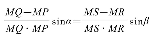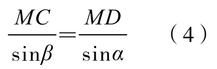 但因∠DMO=90°-∠AMS=90°-α,而又c o s∠DMO=c o s(90°-α)=sin α;同理,有cos∠CMO=sin β。