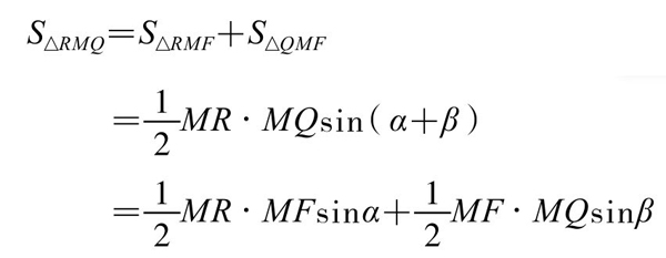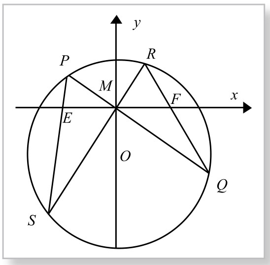 如图5-11-5,以M点为原点,以MF为横轴正向,建立直角坐标系。设圆心坐标为O(0,-a),半径r,直线PQ、RS方程分别为y=k1x、y=k2x,则圆的方程为x2+(y+a)2=r2。