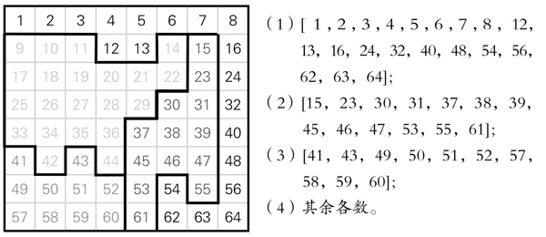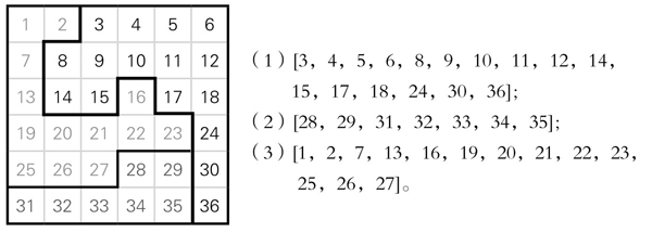 而六阶序方可以分成3个等值块,等值块的商值为222。有很多种分块方法,例如下面的三种分法(图5-14-9至5-14-11):
