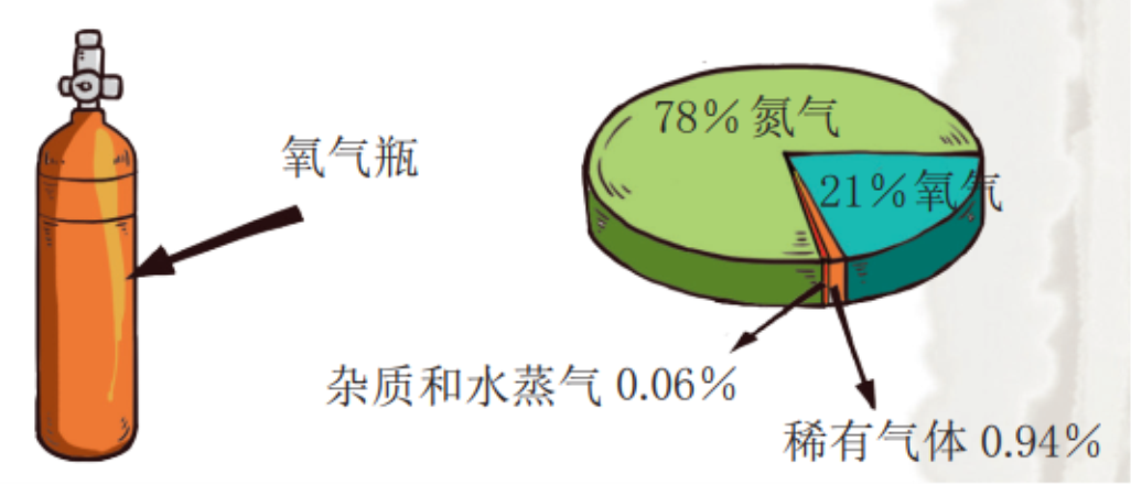 5.因为医院抢救病人都会使用氧气瓶,所以很多人都误以为我们平时呼吸的空气也大部分都是氧气。其实这种想法是错误的,我们呼吸的空气中氮气占了大部分,约有78%,氧气才占约21%而已,稀有气体约占0.94%,杂质和水蒸气占0.06%。